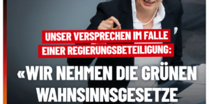 +++ Versprochen: Im Falle einer Regierungsbeteiligung nehmen wir die grünen Wahnsinnsgesetze zurück! +++ Während die Zerstörung unserer Kernkraftwerke nach deren Abschaltung bereits in vollem Gange ist, kündigt Wirtschaftminister Habeck nun …